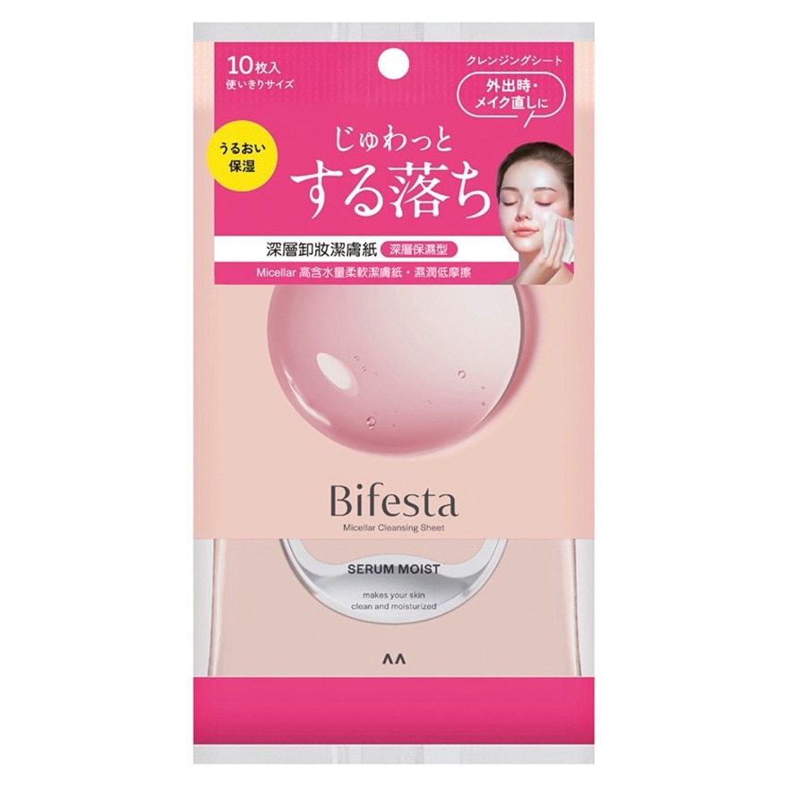 Use cleansing sheet to wipe on dry face to remove dirt and makeup. To remove heavy eye makeup, press softly on eyelids for a few seconds until makeup is dissolved. No need to rinse. If you prefer a fresher feeling, rinse with water but no need to use facial wash products to avoid washing off the moisture retaining factor. To remove waterproof eye makeup, recommend using Bifesta Eye Makeup Remover. To prevent cleansing sheet from dryness, seal tightly. Please use as soon as possible after opening.