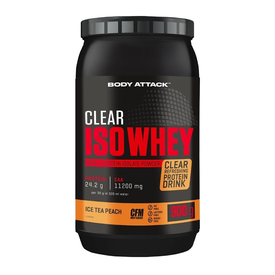 BODY ATTACK CLEAR ISO WHEY POWDER PROVIDES YOU WITH A REFRESHING ALTERNATIVE TO CLASSIC PROTEIN SHAKES! TEST ONE OF 9 FRUITY VARIETIES AND FIND YOUR FAVOURITE. WITH APPROX. 25 G PROTEIN AND APPROX. 11,400 MG EAAS PER SERVING (30 G) YOU ARE WELL PREPARED FOR EFFECTIVE MUSCLE BUILDING! AFTER YOUR BEST PERFORMANCE, GIVE YOUR BODY THE BUILDING BLOCKS IT NEEDS TO BUILD UP. YOU GET CLEAR, HIGH-QUALITY CFM WHEY PROTEIN ISOLATE WITH EVERY THIRST-QUENCHING SHAKE. WE DO WITHOUT SUGAR, FAT AND GENETIC ENGINEERING - YOUR PERFORMANCE REMAINS AT THE HIGHEST LEVEL!