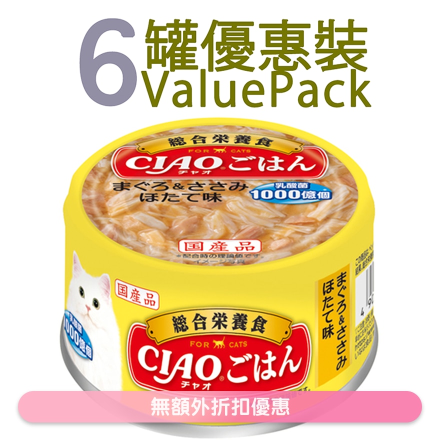 ![[6 cans] <CIAO Complete Diet> Tuna&Chicken Scallop (85g x6) Cat Can 606410](https://medias.watsons.com.hk/publishing/INABA_A-252_6-YoNX7Wpf-rMYlG5ie-zoom.png?version=1773978577)