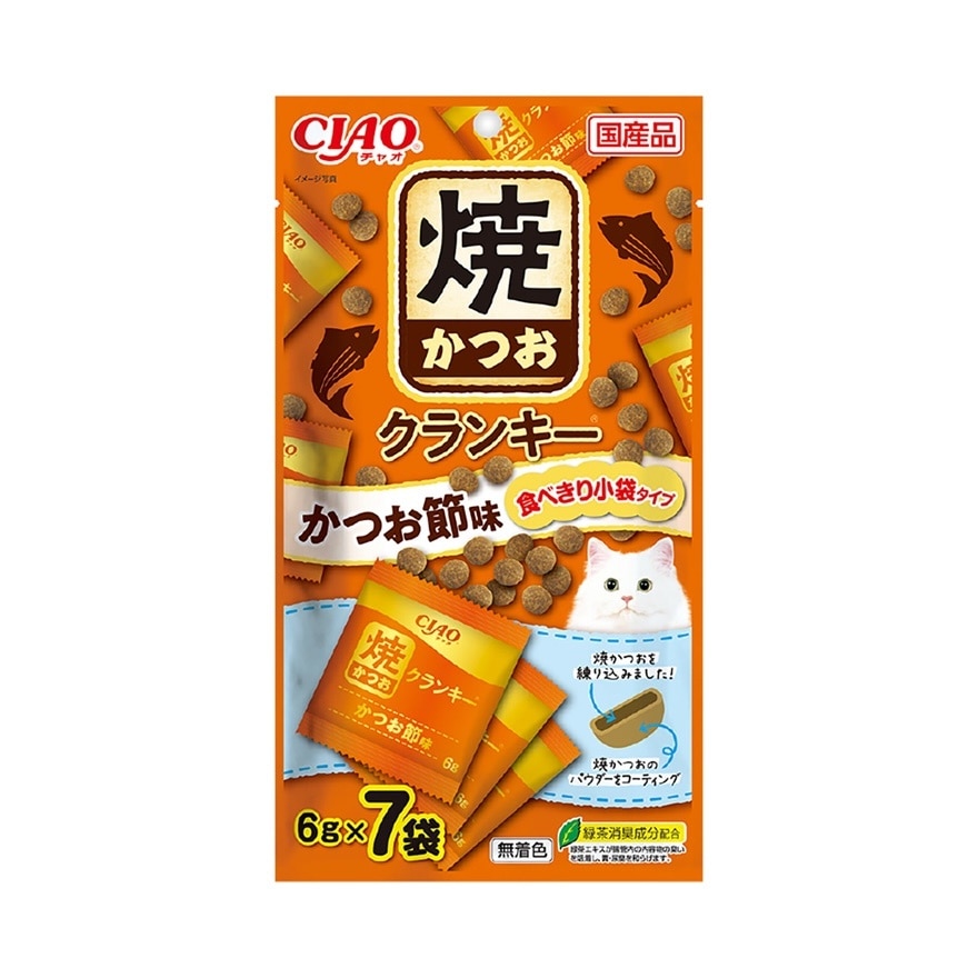 Cereals (corn, wheat flour, etc.), seafood (white fish meal, bonito powder, fish extract, bonito powder, bonito flakes, etc.), meat (beef meal, pork meal, chicken liver powder, chicken meal, etc.), animal fats and oils, minerals (Na, Cl, Ca, P, K, Fe, Zn, Cu, Mn, Co, I), vitamins (A, B1, B2, B6, B12, C, D3, E, K3, choline, niacin, pantothenic acid, folic acid, biotin), amino acids (methionine, glycine, taurine), green tea extract, antioxidants (herb extract, mixed tocopherols)