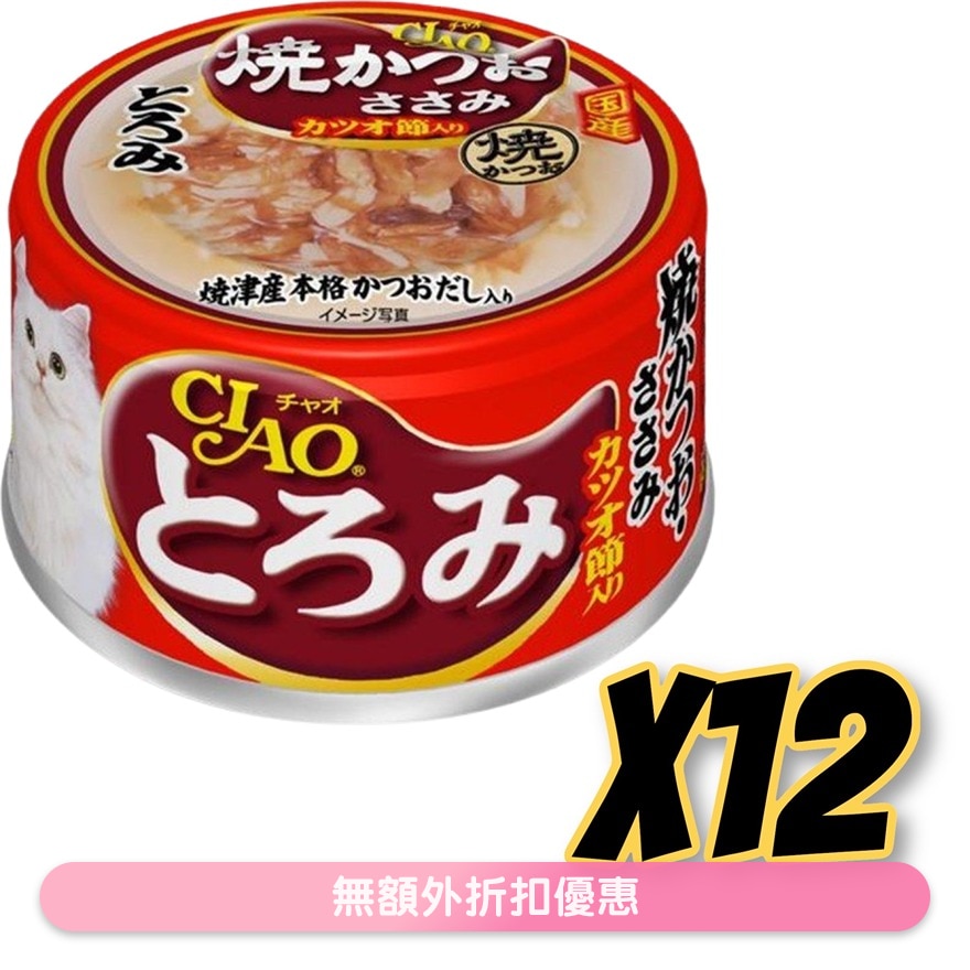 Toromi Grilled Skipjack, Chicken Fillet with Dried Bonito (80gx12) Cat Can A48x12