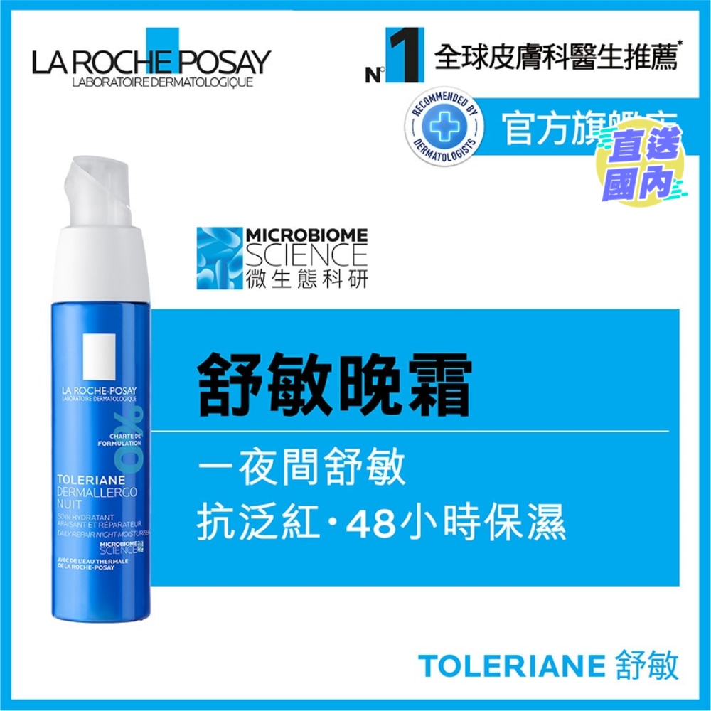 Soothing overnight moisturiser enriched in La Roche-Posay Thermal Spring Water and soothing agent Neurosensine.