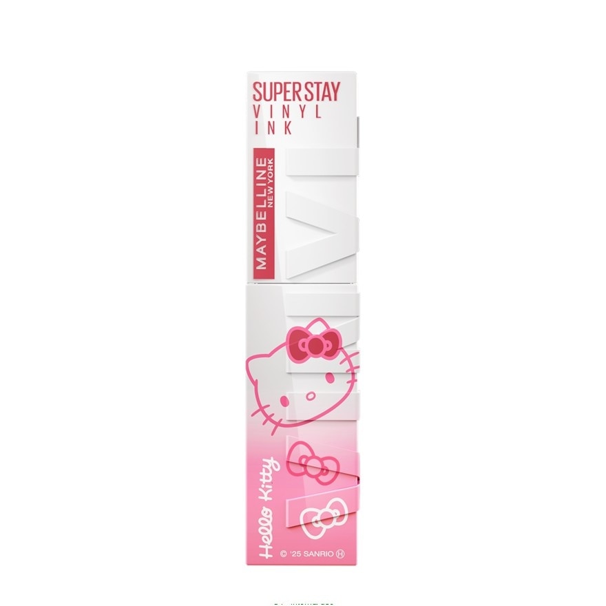 MAYBELLINE SUPERSTAY VINYL INK LIPSTICK INTRODUCES THE NEW HELLO KITTY LIMITED COLLECTION WITH INTENSE SHINE. SHAKE PACK TO MIX THE BIOMIMIC PIGMENTS & COLOR LOCK COMPLEX FOR THE 16H# LONG WEAR. TRANSFER & SMUDGE RESISTANT.