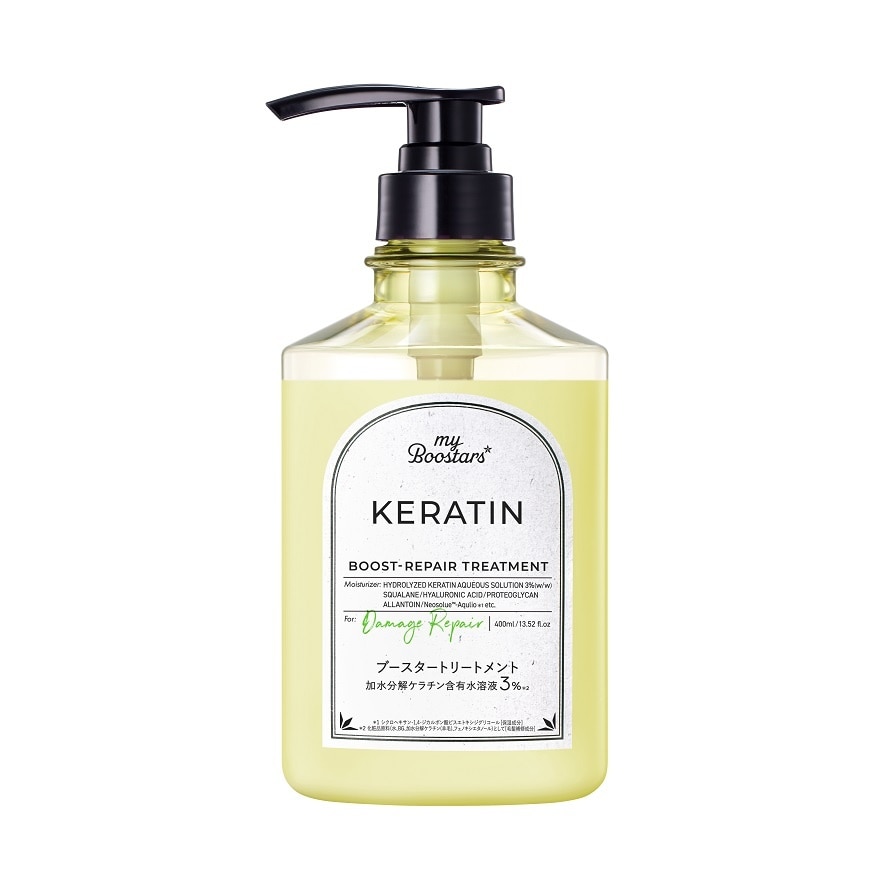 KERATIN BOOST-REPAIR FORMULA REPAIRS DAMAGE AND LEADS TO LUSTROUS, RESILIENT HAIR FROM WITHIN.