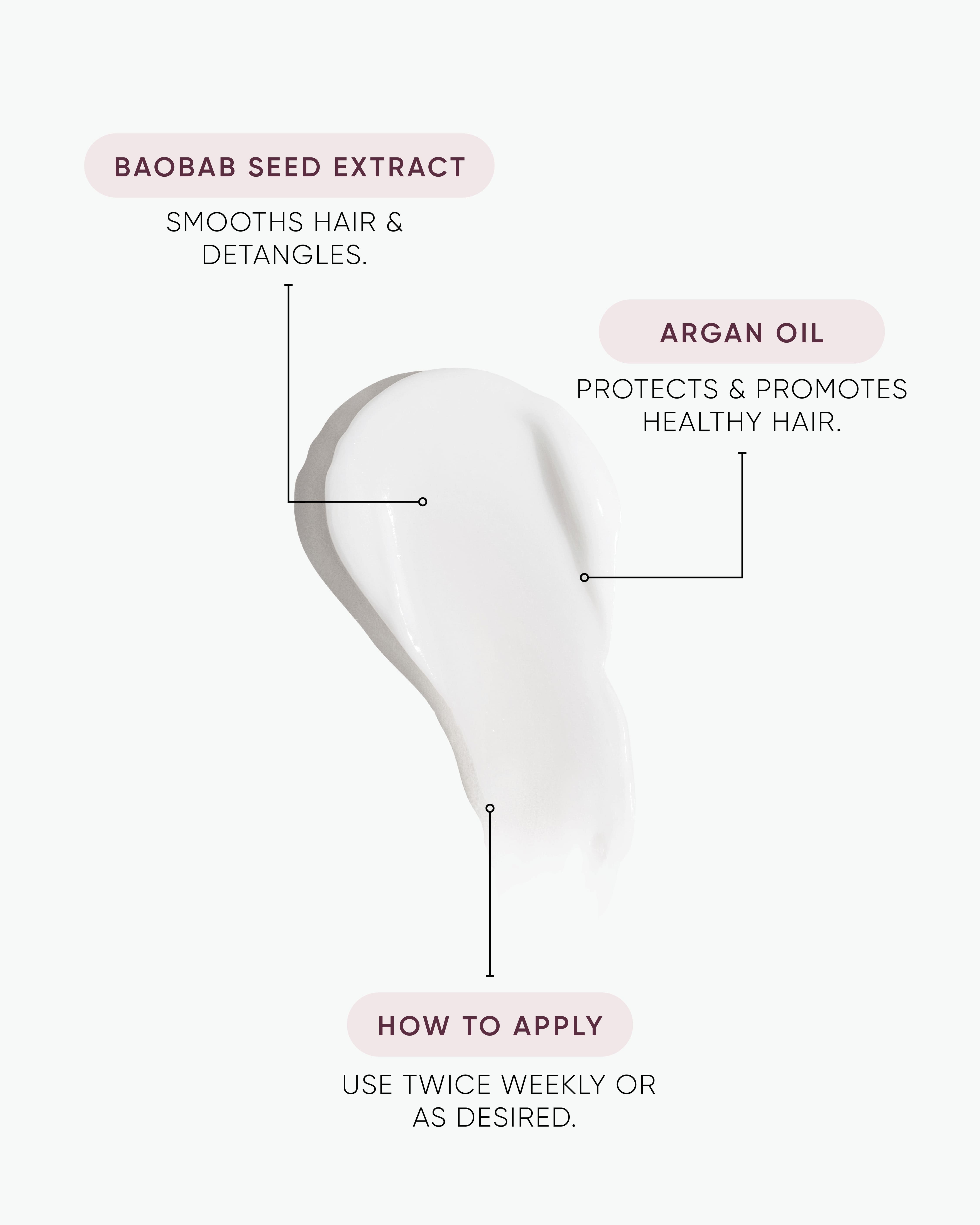 WATER (AQUA), CETEARYL ALCOHOL, BEHENTRIMONIUM CHLORIDE, EUPHORBIA CERIFERA (CANDELILLA) CERA, AMODIMETHICONE, ECTOIN, ARGANIA SPINOSA (ARGAN) KERNEL OIL, COCOS NUCIFERA (COCONUT) OIL, ALOE BARBADENSIS (ALOE VERA) LEAF JUICE, HYDROLYSED RICE PROTEIN, HYDROLYSED SOY PROTEIN, LEUCONOSTOC/RADISH ROOT FERMENT FILTRATE, HYDROLYSED ADANSONIA DIGITATA (BAOBAB) SEED EXTRACT, CHENOPODIUM QUINOA (QUINOA) SEED EXTRACT, PYRUS COMMUNIS (PEAR) FRUIT EXTRACT, PANTHENOL, GLYCERIN, CETRIMONIUM CHLORIDE, TRIDECETH-12, ISOPROPYL ALCOHOL, TRIETHANOLAMINE, CITRIC ACID, FRAGRANCE (PARFUM), SODIUM BENZOATE, PHENOXYETHANOL, ETHYLHEXYLGLYCERIN, COUMARIN, TETRAMETHYL ACETYLOCTAHYDRONAPHTHALENES.