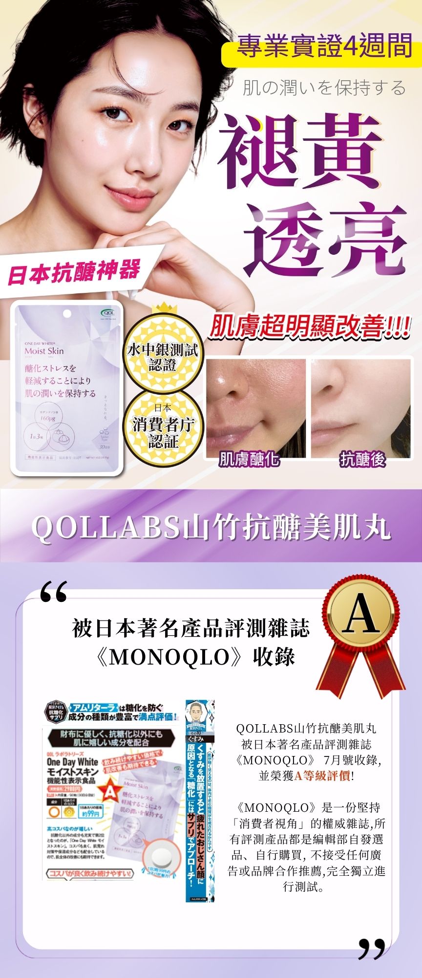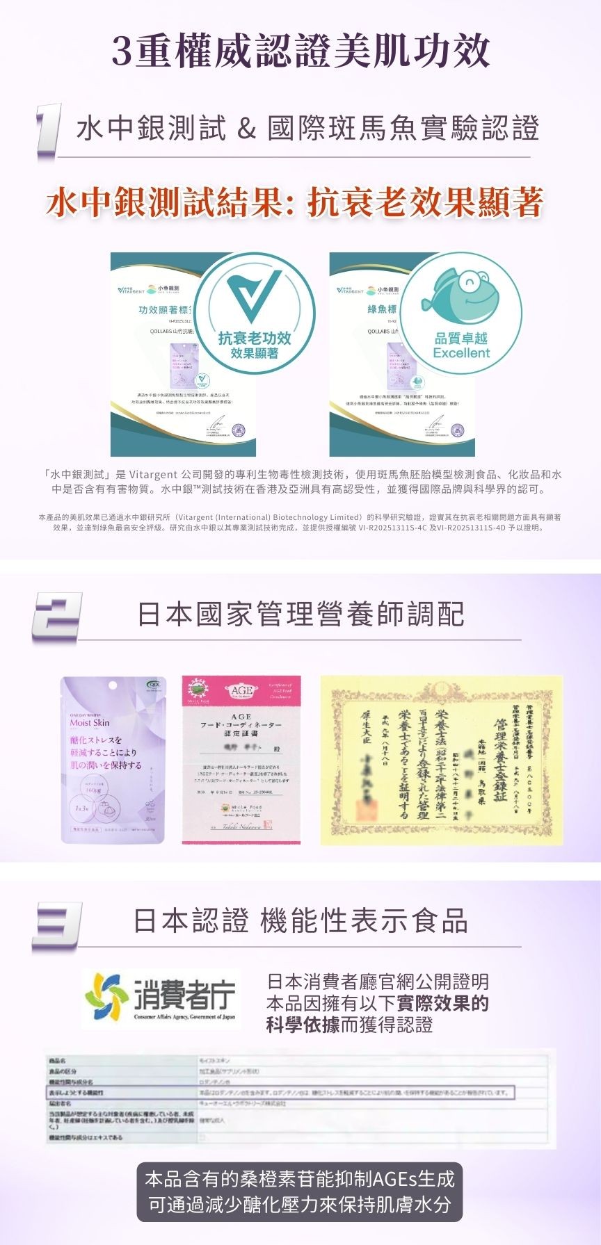 Vitargent-tested and certified: Significant anti-aging effects. Certified by the Japanese Consumer Affairs Agency for anti-glycation effects. Recommended by popular Japanese magazine columns.