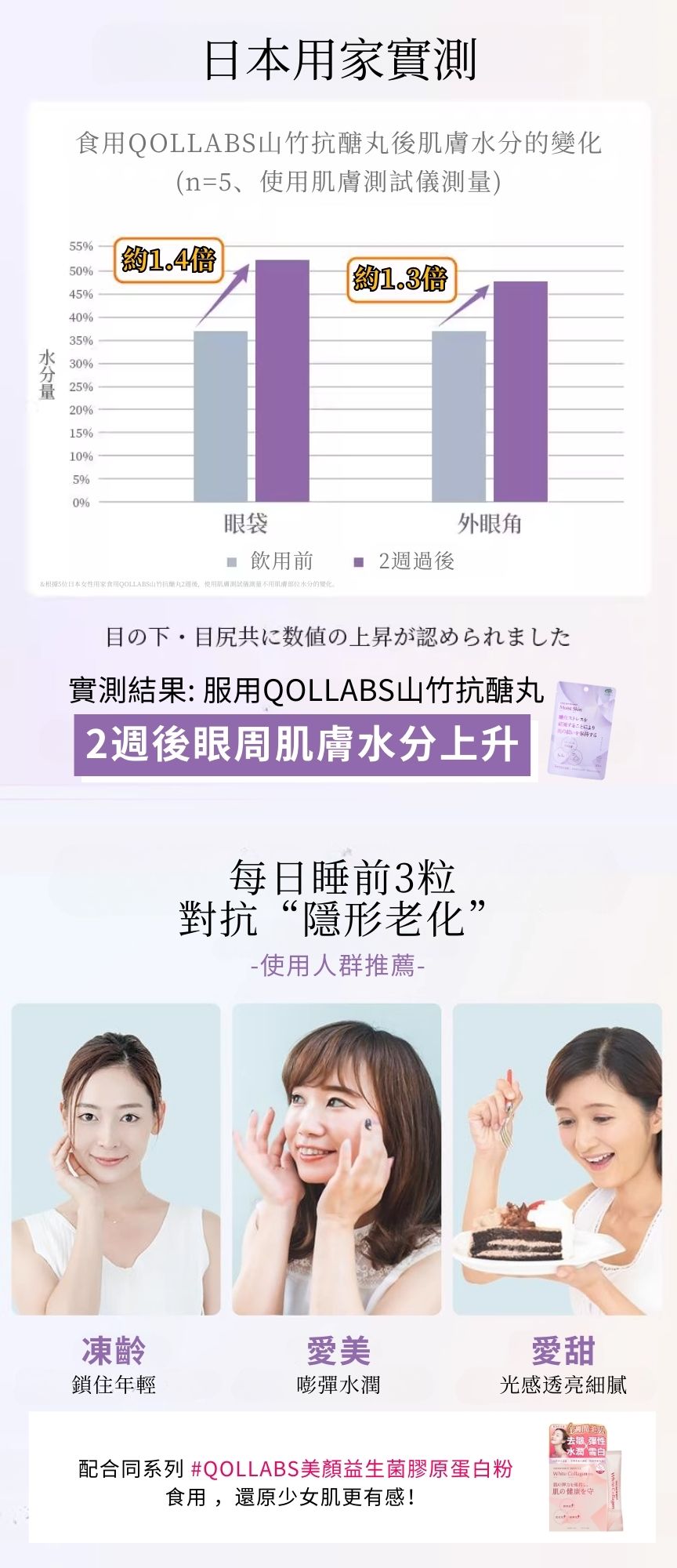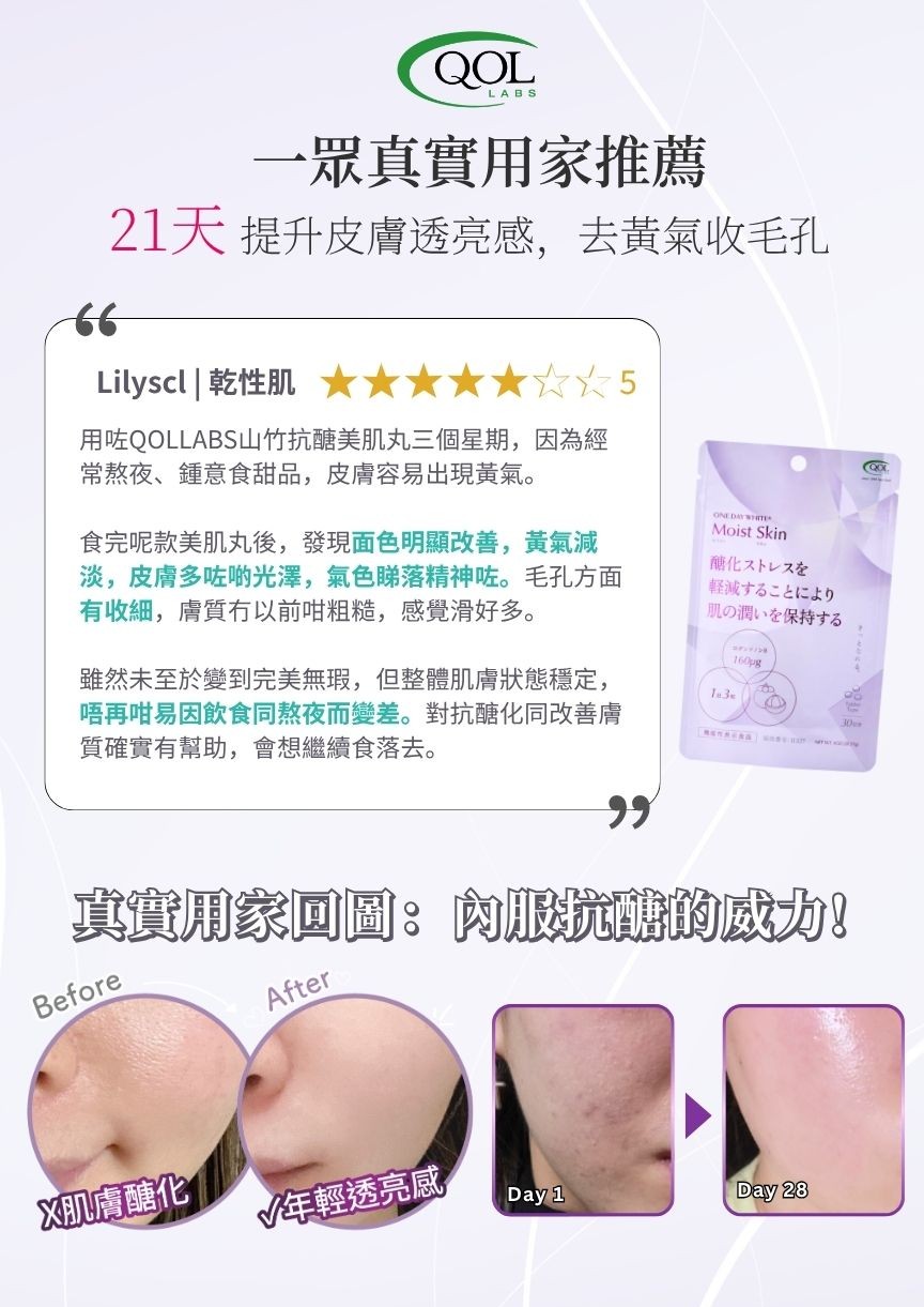 Directions: Take three capsules daily, preferably before bedtime, for optimal skincare results. Combined with QOLLABS Probiotics Collagen Powder , this product offers even more anti-glycation benefits!