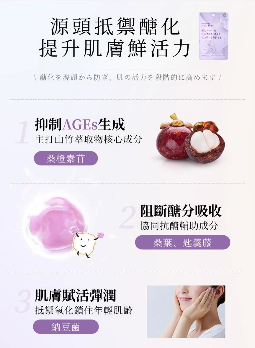 An internal anti-glycation moisturizing mask. Reduces skin glycation and aging substances, leaving skin more translucent, plump, and refined, while boosting antioxidant capacity. Recommended by real users: Improves skin translucency, removes yellowing, and tightens pores in 21 days!