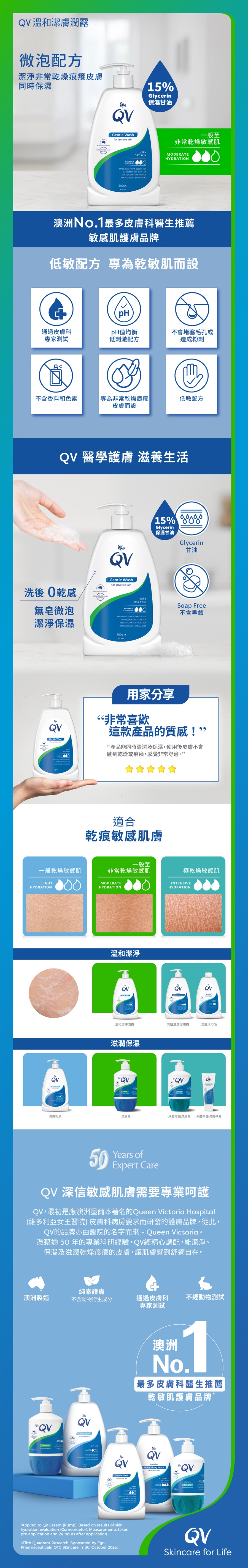 Wet skin, apply a small amount of QV Gentle Wash to the affected area, lightly massage onto skin. Rinse and gently pat dry.
