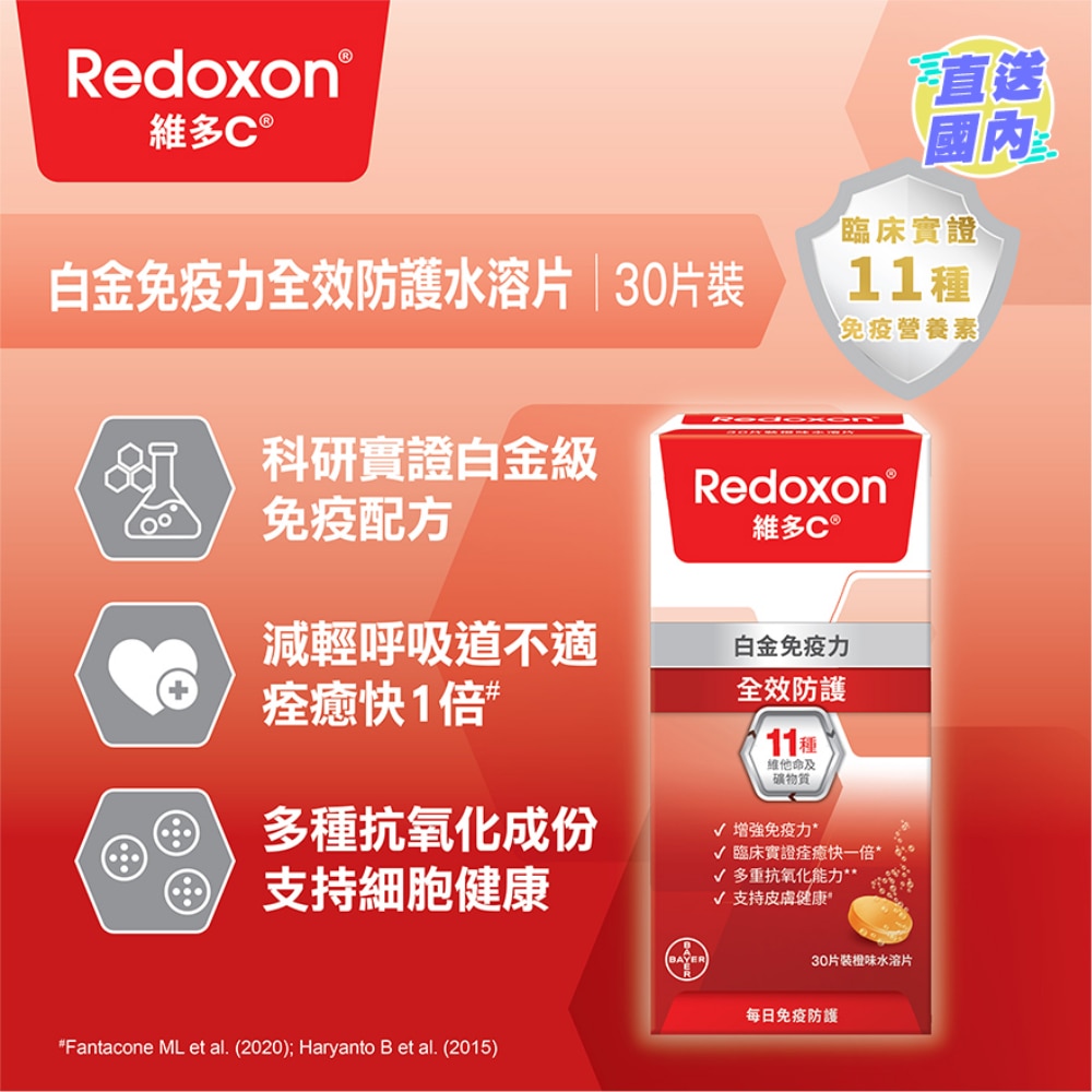 selected vitamins and minerals (including vitamins A, B6, B12, E, Folic Acid, Copper, Iron, Selenium), to enhance 3 layers of immunity including the skin barrier, immune cells and antibodies, helping you cope with immune challenges such as discomfort which may arise from temperature changes, stress, fatigue and unbalanced diets. High dose antioxidant power, protects cells from oxidative damage and maintains immune system function.