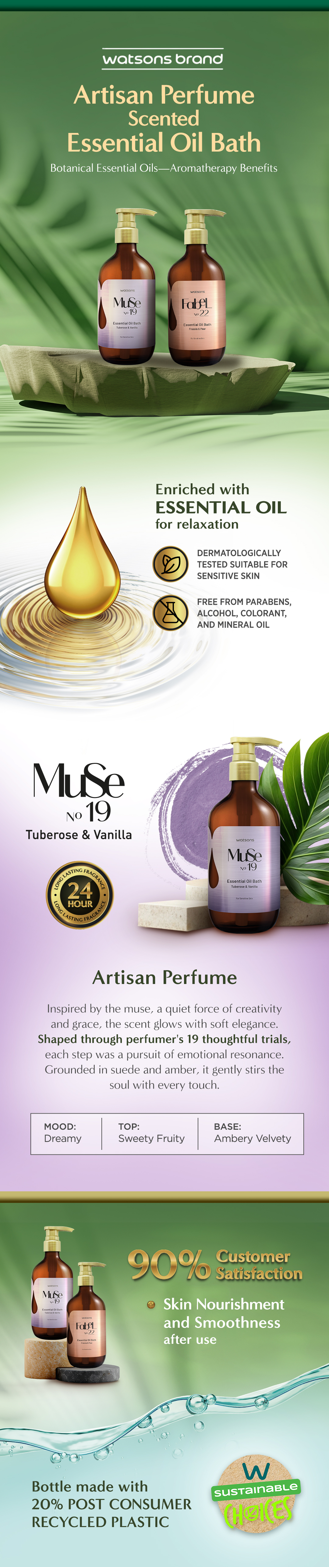 ENJOY A SPA-LIKE EXPERIENCE. ENRICHED WITH CHAMOMILE OIL, IT HELPS DEEPLY RELAX AND MOISTURIZE, LEAVING SKIN FEELING SOFT AND COMFORTABLE AFTER EVERY BATH.