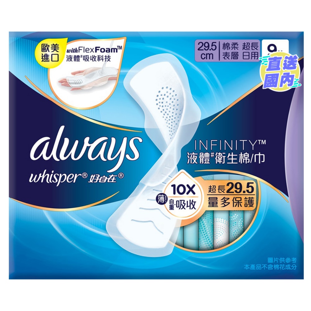 WHISPER LIQUID PAD INFINITY FLEXFOAM ABSORBENT DAY 29.5CM 9S