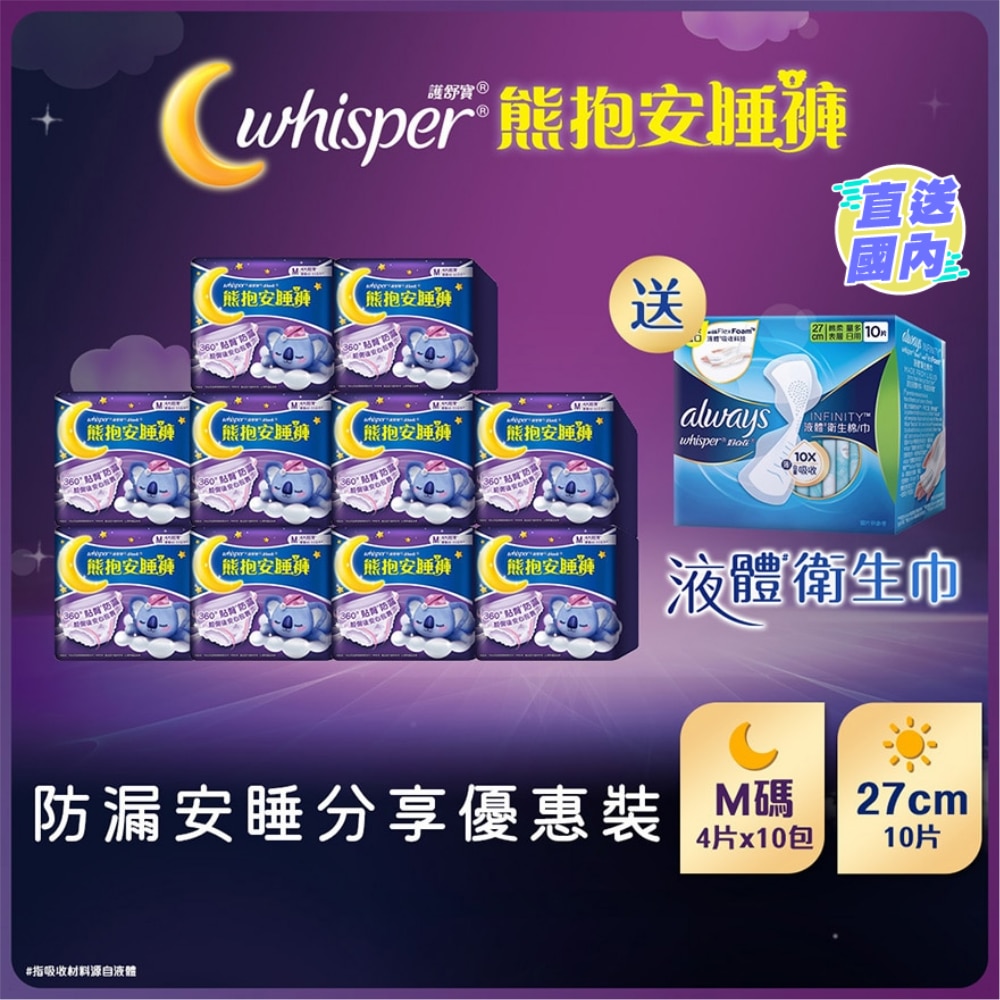 [优惠套装 ] 护舒宝熊抱安睡裤M码4片 X 10 + 液体卫生巾Infinity量多日用27cm 10片 X 1