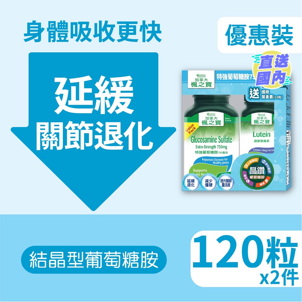 特强葡萄糖胺750 毫克 (120片*2) + 护眼叶黄素 (10 粒 )