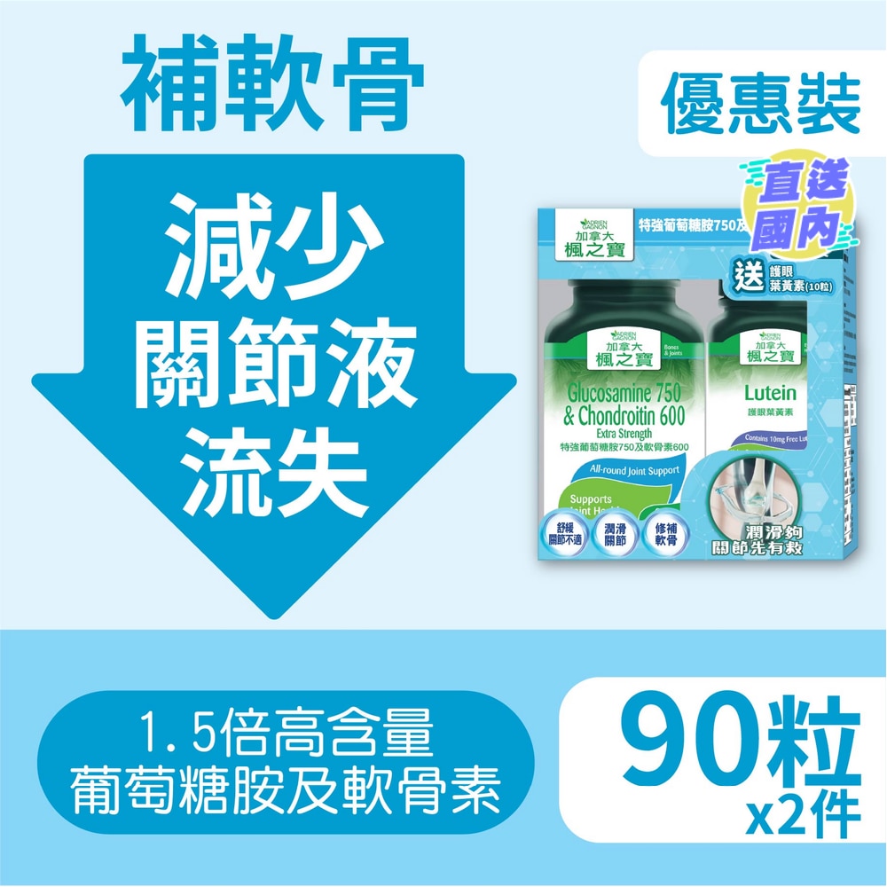 特强葡萄糖胺750及软骨素600 (90片*2) + 护眼叶黄素 (10 粒 )