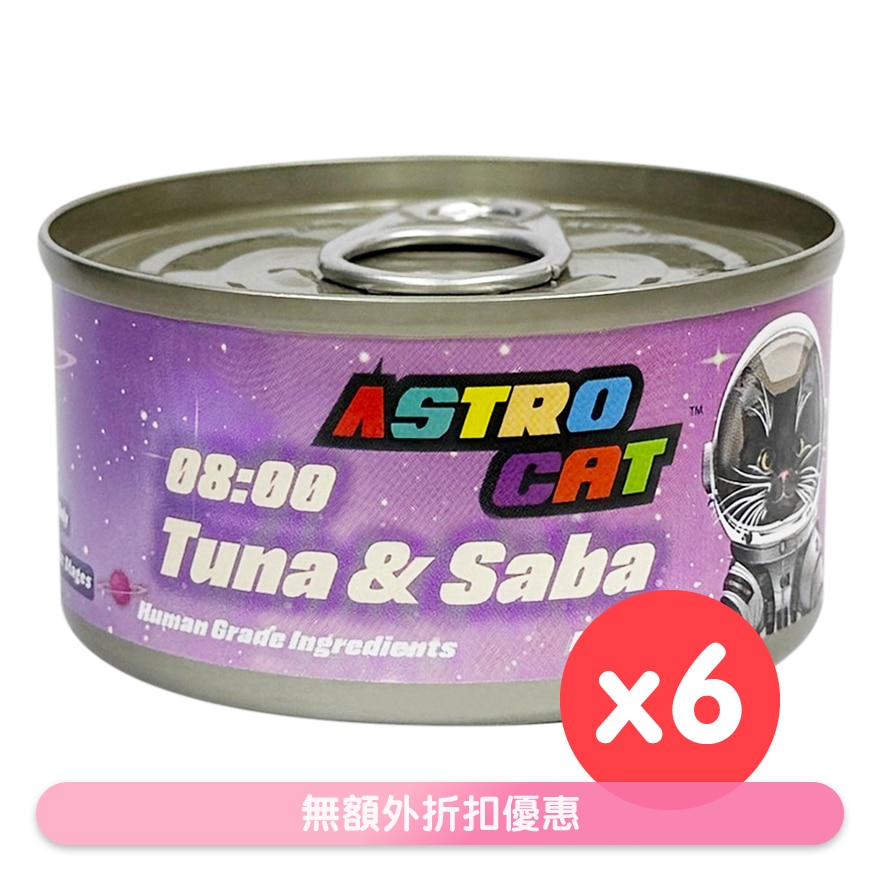 [6罐] 08:00 沙巴鱼吞拿鱼肉丝 猫罐头 (70g x6) Astro Cat 361086