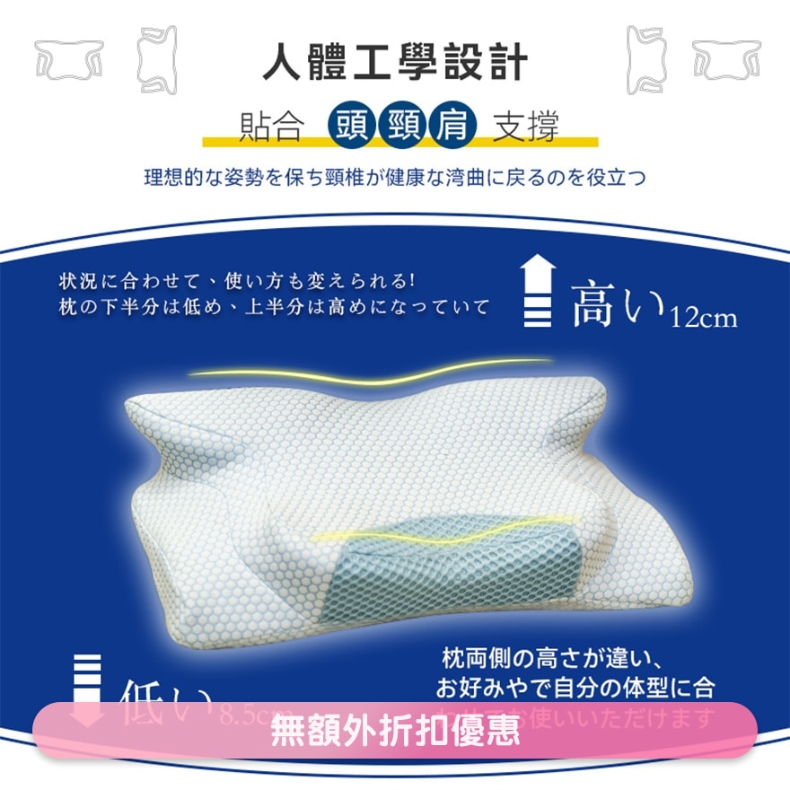 1.独有专利设计枕头,立体侧边设计,头、颈、肩、手臂4点支撑,有效放松肌肉,消除肩颈背痛,帮助快速入睡。