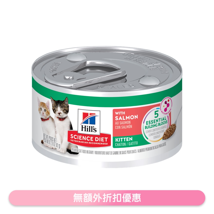 希尔思宠物食品 幼猫 健康炖肉三文鱼主食罐 质地顺滑、柔软。精心配制以满足小猫的发育需求,让它们拥有最好的生活开端并充分发挥其潜力。