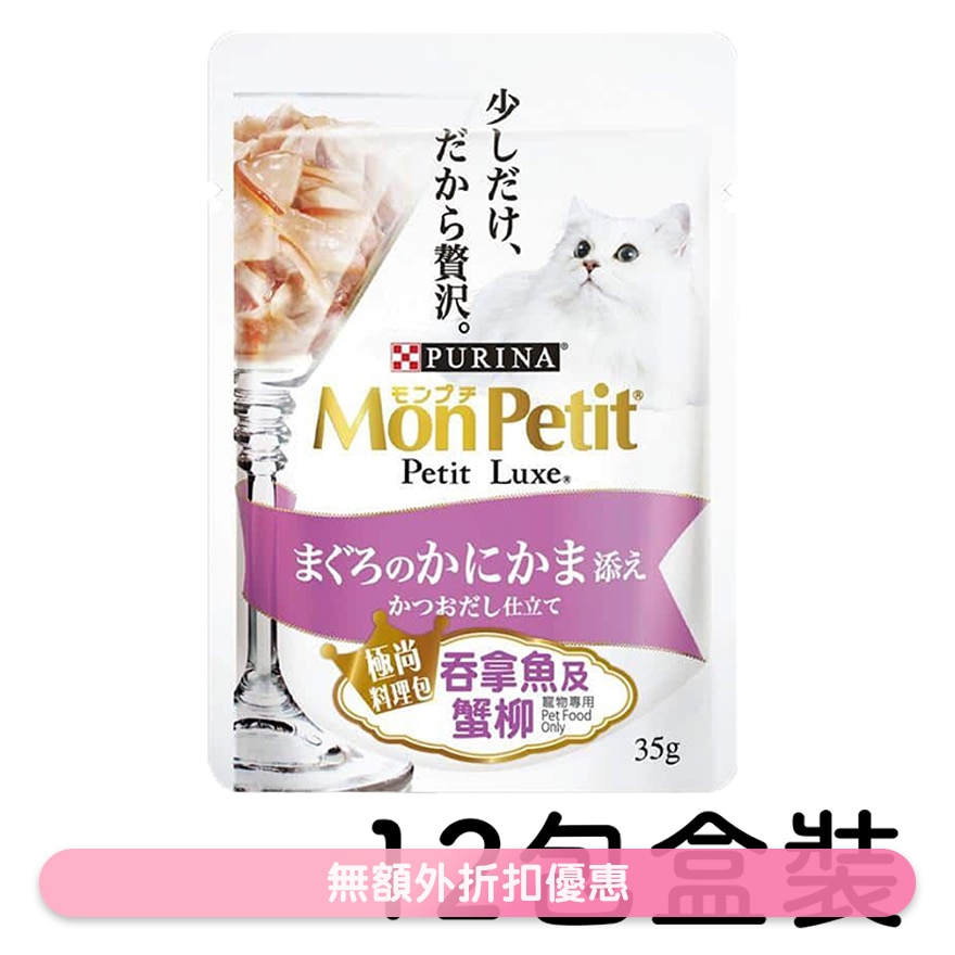![[盒装优惠] 极尚料理包 吞拿鱼及蟹柳 猫袋装湿粮 (35g x12) 025957 MonPetit](https://medias.watsons.com.hk/publishing/MON_PETIT_12590254_12-C67AO8r4-JpiJs46A-zoom.png?version=1776844481)