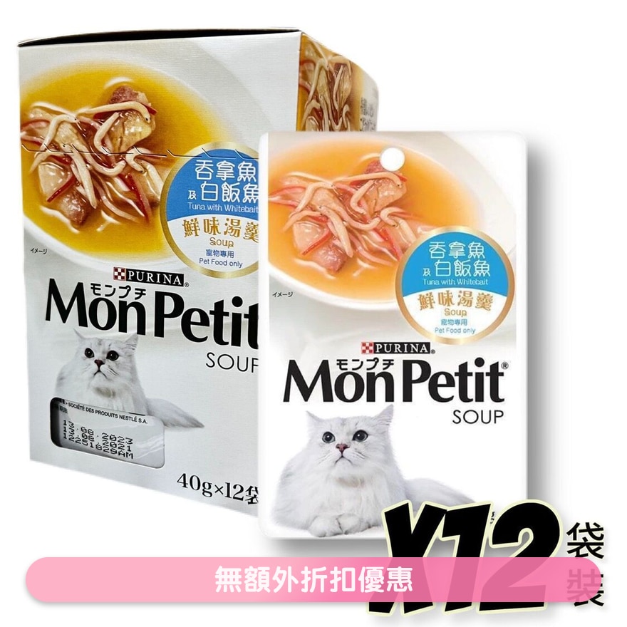 ![[盒装优惠]鲜味汤羹吞拿鱼及白饭鱼 猫袋装湿粮 (40gx12) 02812 MonPetit](https://medias.watsons.com.hk/publishing/urHHRHUZsu20250211081424-cigO736U-eZLP2xaQ-zoom.png?version=1773977832)