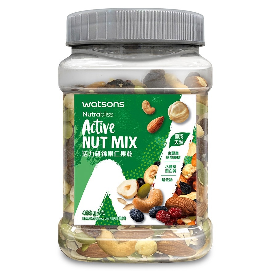 材料: 葡萄干(25%)、杏仁(20%)、葵花籽(15%)、南瓜籽(15%)、腰果(10%)、蔓越莓干(10%)、榛子(5%)