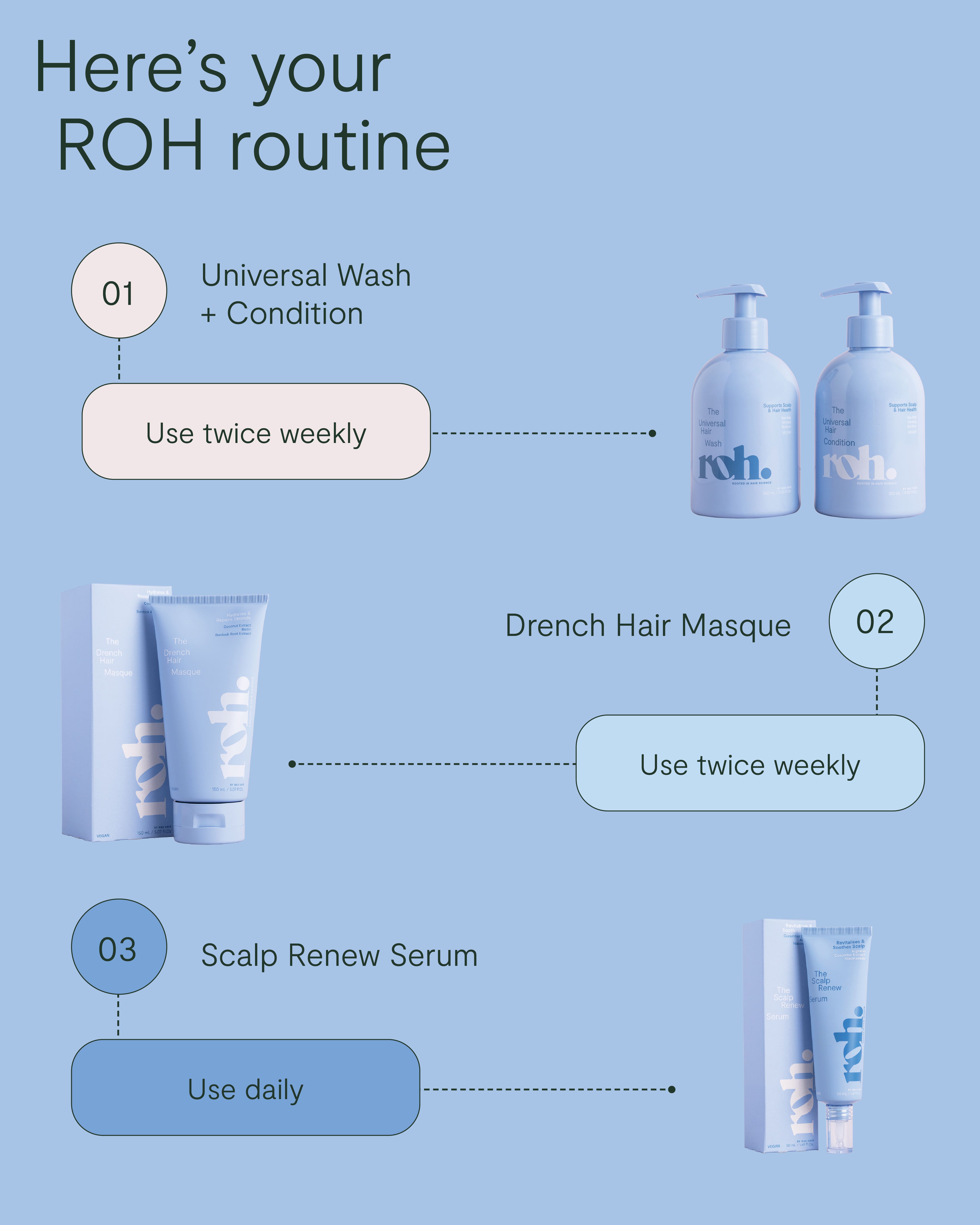 在清洁湿发上使用,轻柔梳理以解开发丝纠结。将产品按摩于头皮1-2分钟后,彻底冲洗干净。为达最佳效果,建议搭配 ROH 保湿滋养喷雾使用。