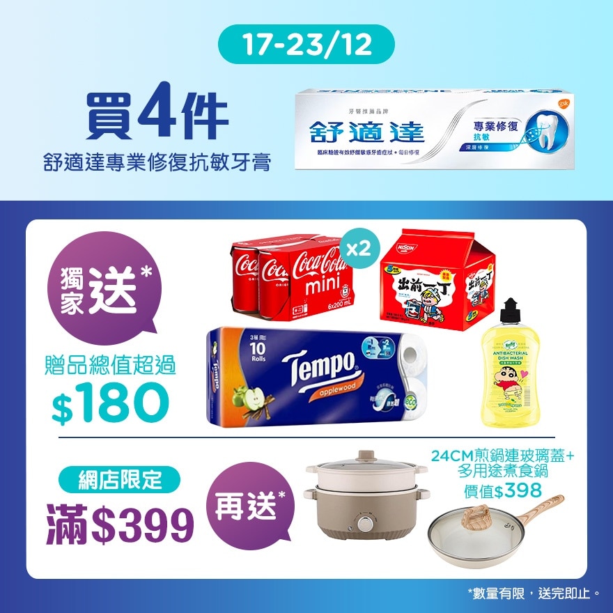 订单总额淨值满$399免运费(商户直送产品除外),选取「特快送」并于早上9点至下午7点下单,最快30分钟内送到。