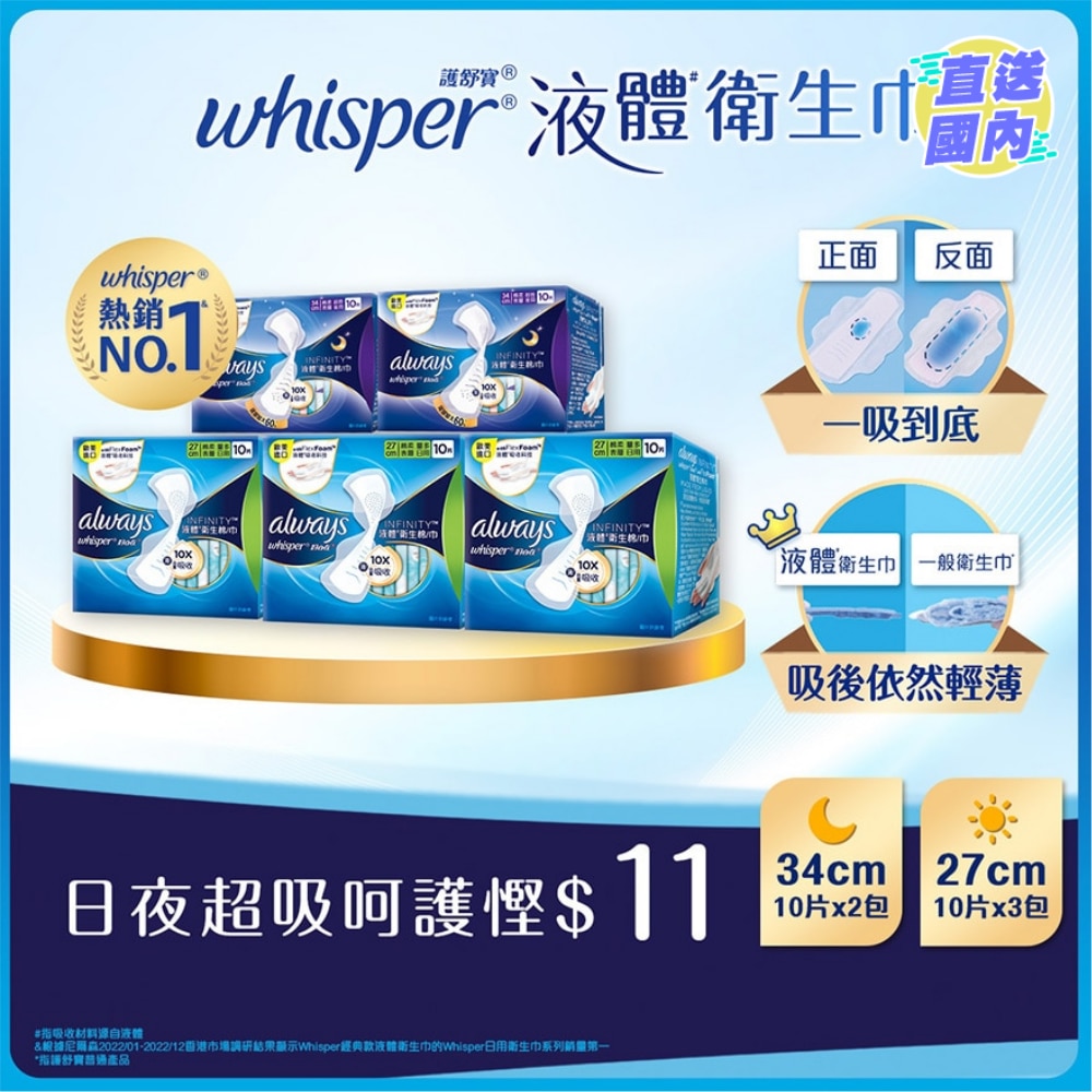 ![[优惠套装 ]护舒宝液体卫生巾Infinity量多日用27cm 10片 X 3 + Infinity超长夜用34cm 10片 X 2](https://medias.watsons.com.hk/publishing/WTCHK-270215-alt1-zoom.jpg?version=1707367839)