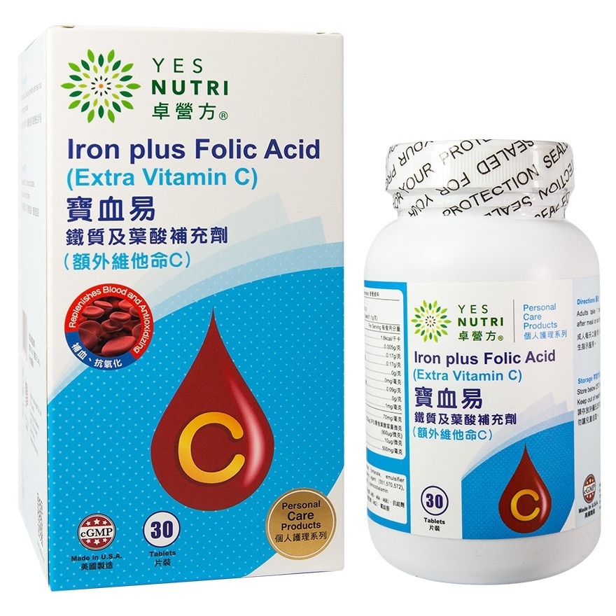 卓营方宝血易铁质及叶酸补充剂含有铁质、维他命B12、叶酸及维他命C。铁质能帮助身体制造健康的红血球和肌红血球,有助解决经常疲倦、肌肉乏力、面色苍白等因缺乏铁质所引致的问题。叶酸能够将碳水化合物转化成能量,使您精力充沛,更能维持脑部的健康和促进身体细胞成长。维他命B12有效维持健康的神经系统和加强铁质在体内制造红血球。本产品特别适合经常疲倦、肌肉乏力或面色苍白之人士服用。