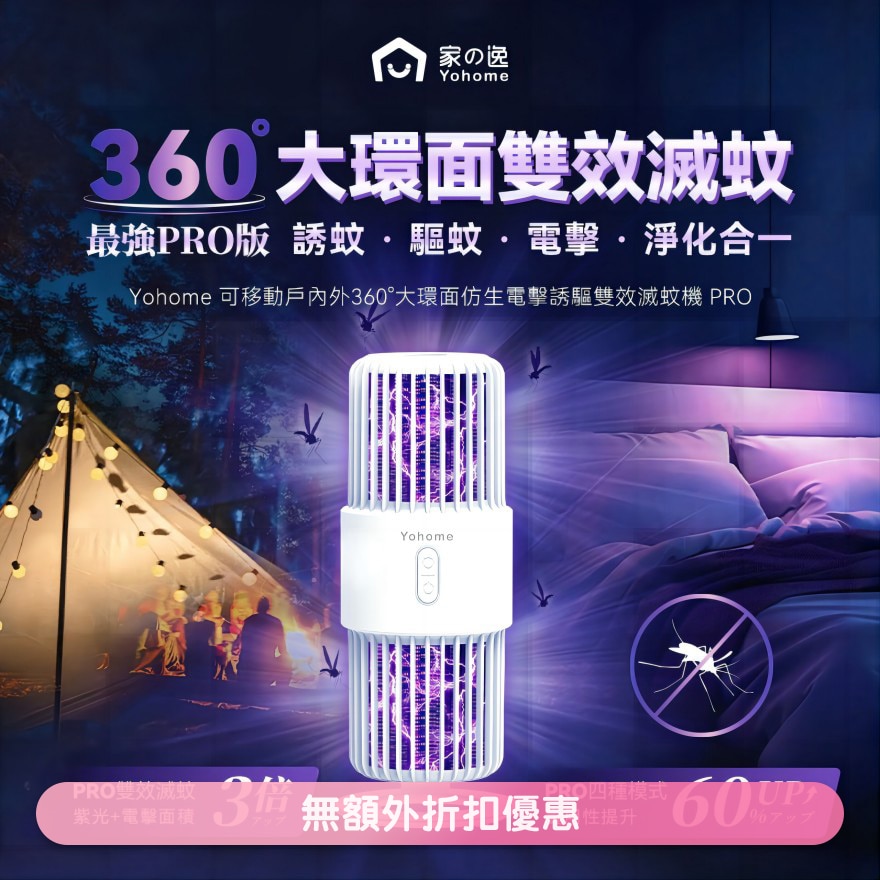 1.双效灭蚊,效果PRO+:超大光源面积诱蚊,搭配360°大面积环绕电网灭蚊,强效捕灭蚊虫。