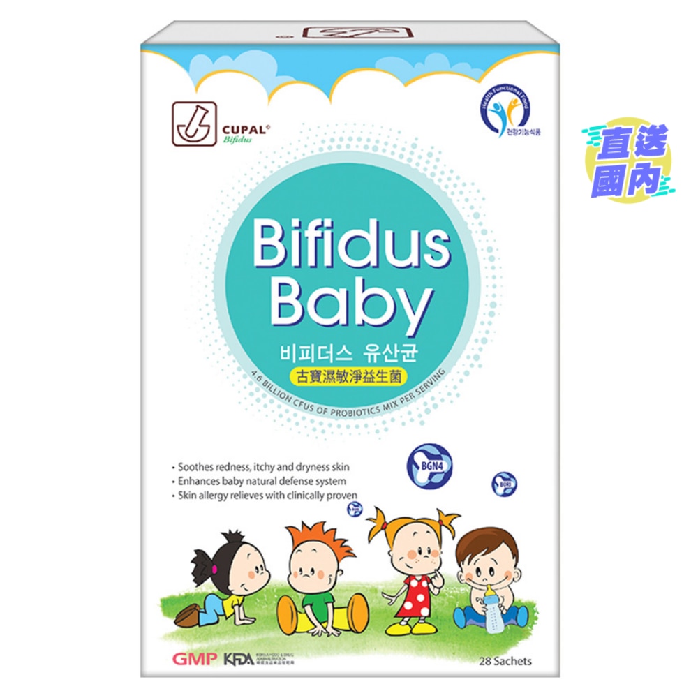 每包蘊含46億專利活性益生元素,當中包含韓國益生專利 BGN4雙歧桿菌,臨床實証,能鞏固嬰幼兒及兒童免疫系統,阻截身體釋放的濕敏因子IgE與致敏原結合,並抑制及舒緩致敏原對免疫系統作出的過敏反應,只需服用6個月,即可大大減少濕敏近50%。