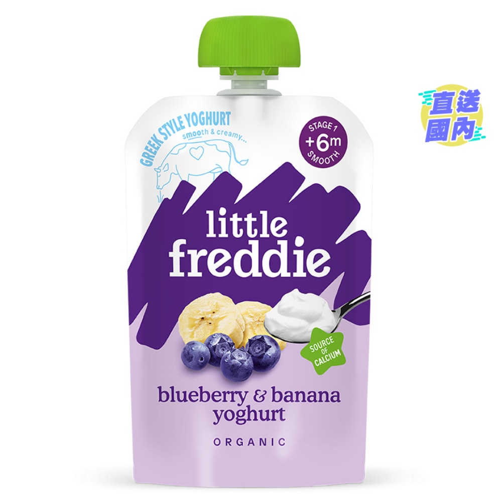 有機希臘式優酪乳(牛奶) 48%,有機香蕉43%,有機藍莓7%,全有機麥燕麥粉(麩質)1%,有機大麥(有機,麸質檸檬汁濃縮)0.1%