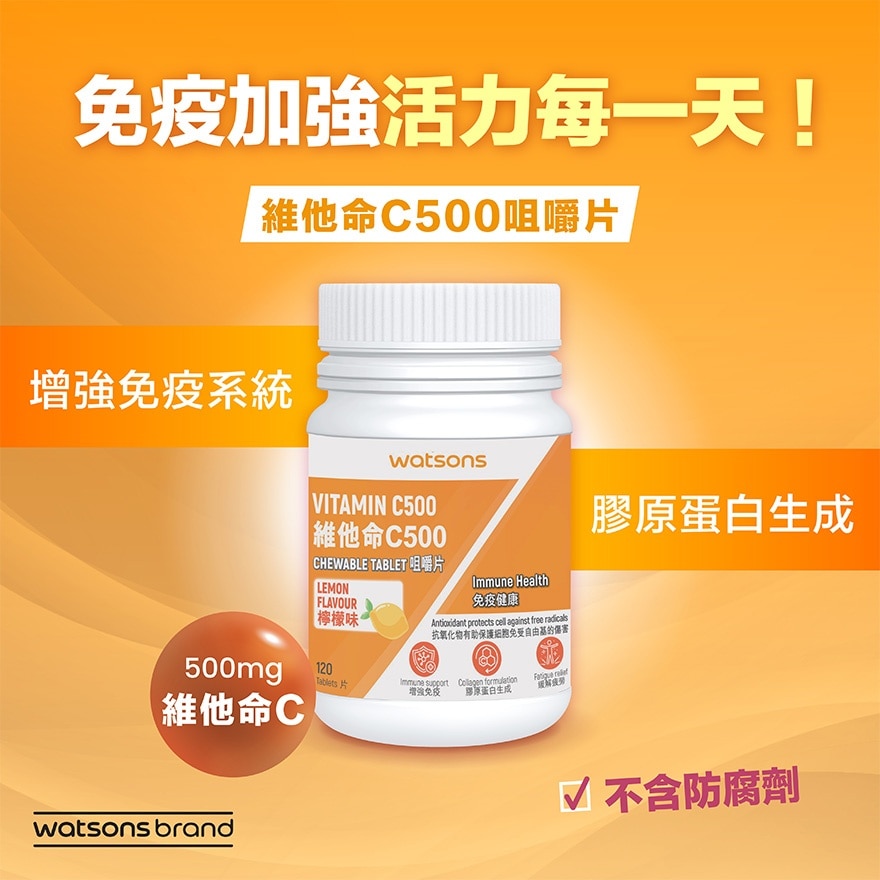 抗壞血酸鈉 (維他命C)、甜味劑 (山梨糖 醇)、抗壞血酸 (維他命C)、蔗糖、穩定劑 (聚乙烯吡咯烷酮)、調味料 (檸檬香料 粉末) [糊精、調味料 (檸檬油、青檸油)、穩定劑 (阿拉伯膠)、Α-萜品醇、檸檬 醛、乙酸橙花酯]、抗結劑 (硬脂酸鎂)、甜味劑 (三氯半乳蔗糖)、色素 (酒石黃)