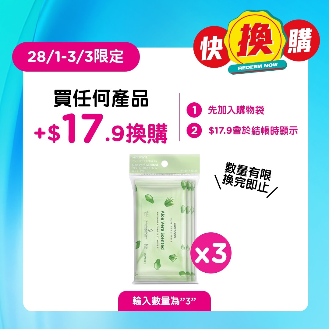 蘆薈清香潔膚濕紙巾10片3包裝