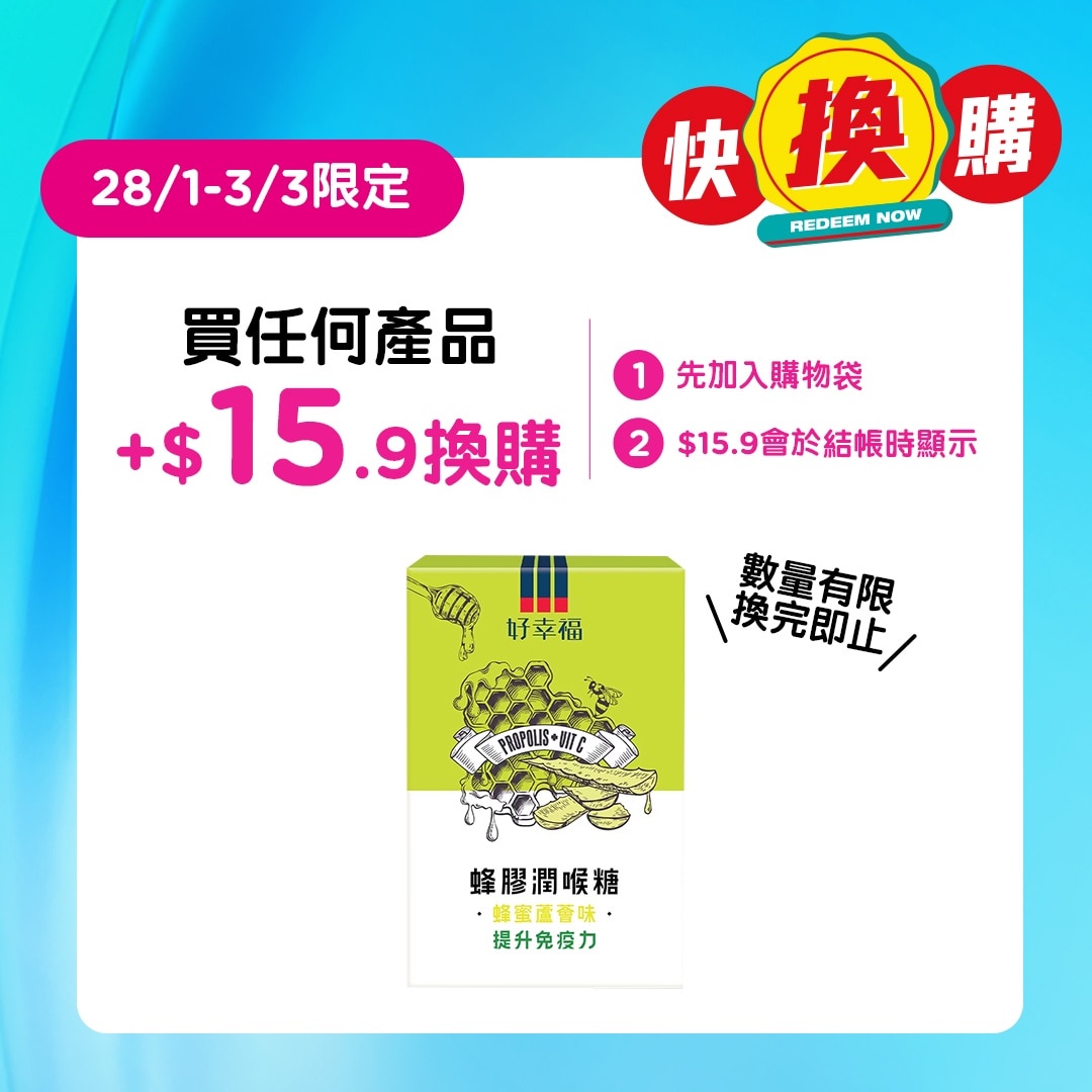 選用珍貴天然歐洲蜂膠,加入蜂蜜、維他命C及蘆薈,有助舒緩喉嚨不適、保持清新口氣及支援免疫力。