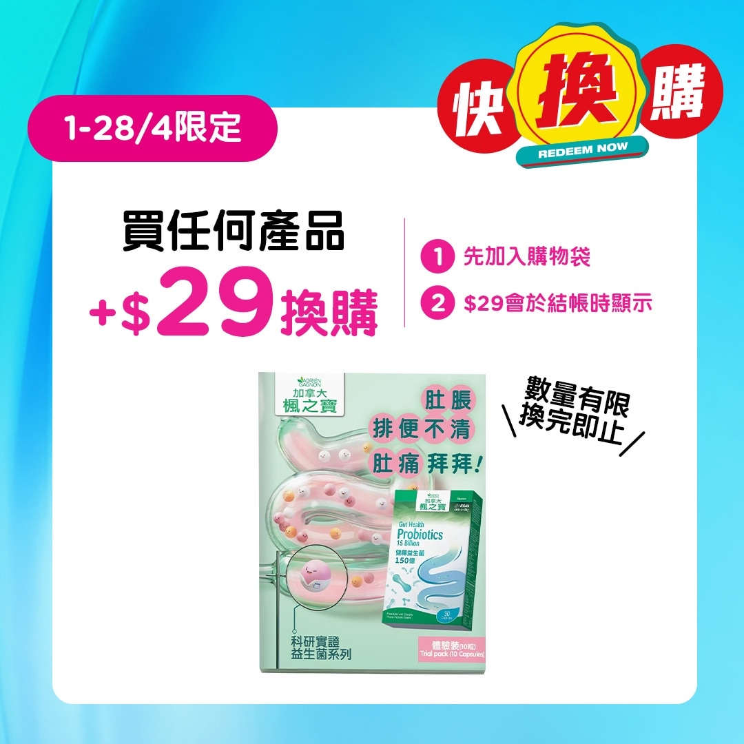 ● 平衡腸道微生態,紓緩偶發性便秘及腹瀉,並改善因生活及工作壓力引起的腸胃不適