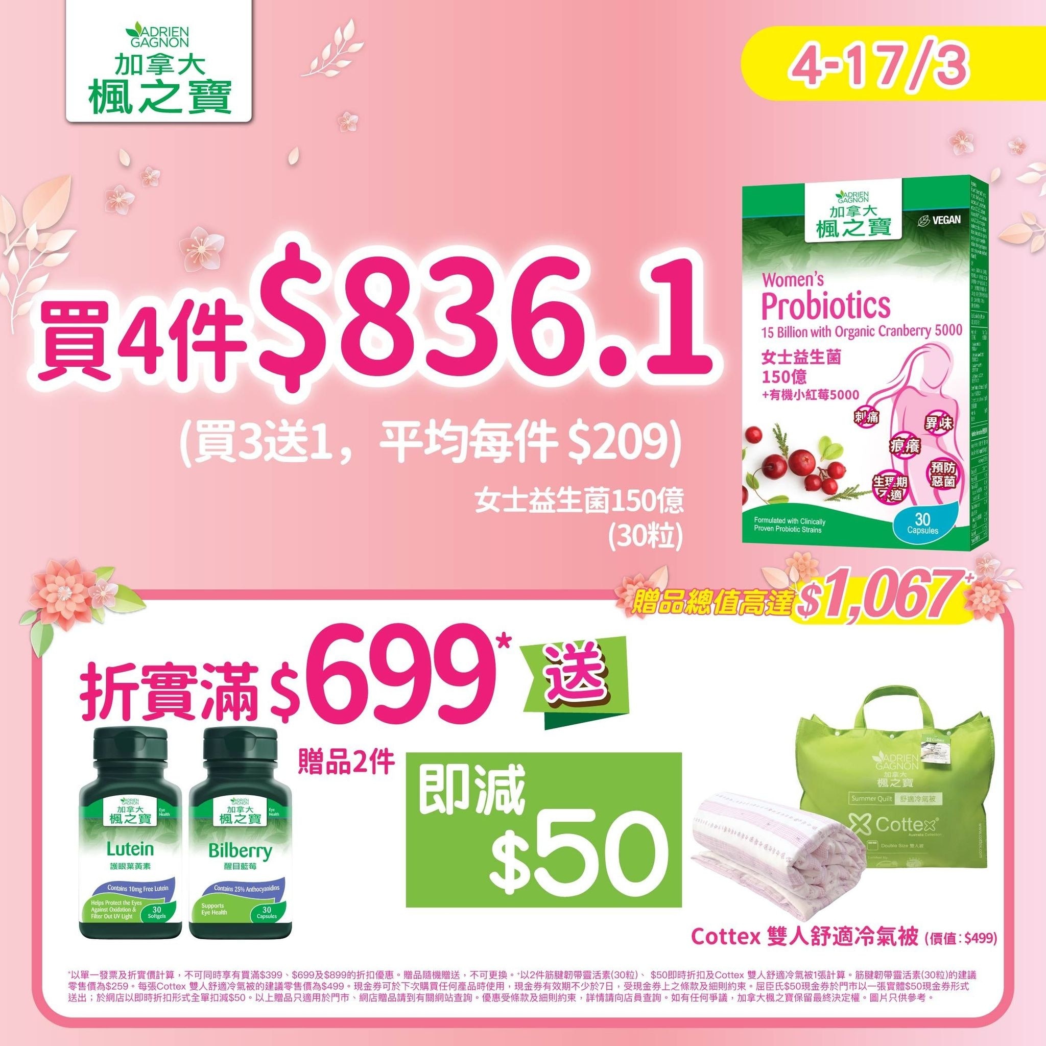 ● 特選法國有機Exocyan™小紅莓5000:6小時起效¹,減少尿道細菌黏附,有效保護女性尿道健康及減少反覆不適