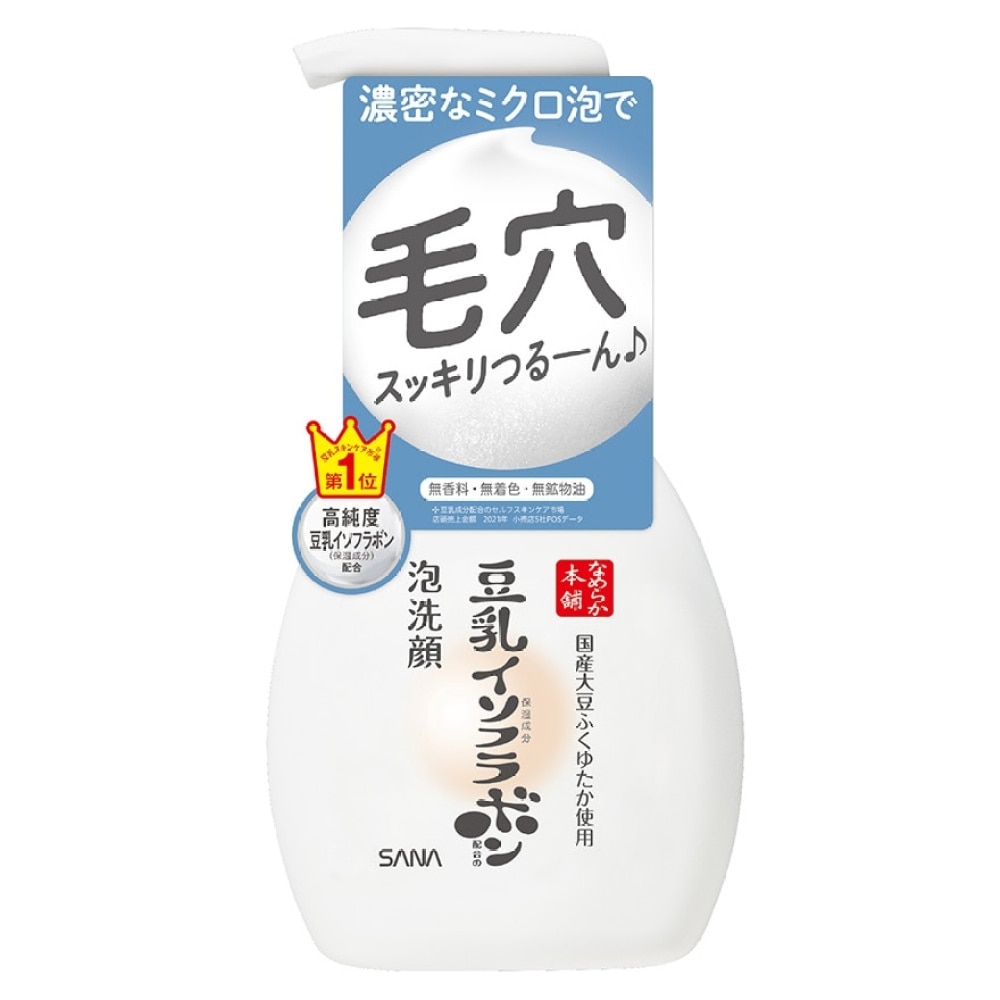 按壓泵頭,即有輕柔綿密豆乳泡沫,節省起泡時間,溫和地潔淨臉上幼滑肌膚,徹底去除臉上污垢,泡沫不黏膩,一洗乾淨,沖洗時間短。潔面泡沫由三種大豆滋養成分調配,其豐富的滋潤美容成份,令肌膚充滿光澤彈力,潔面後滋潤柔嫩不緊繃。性質溫和,無香料、無色素及無礦物油成份添加。