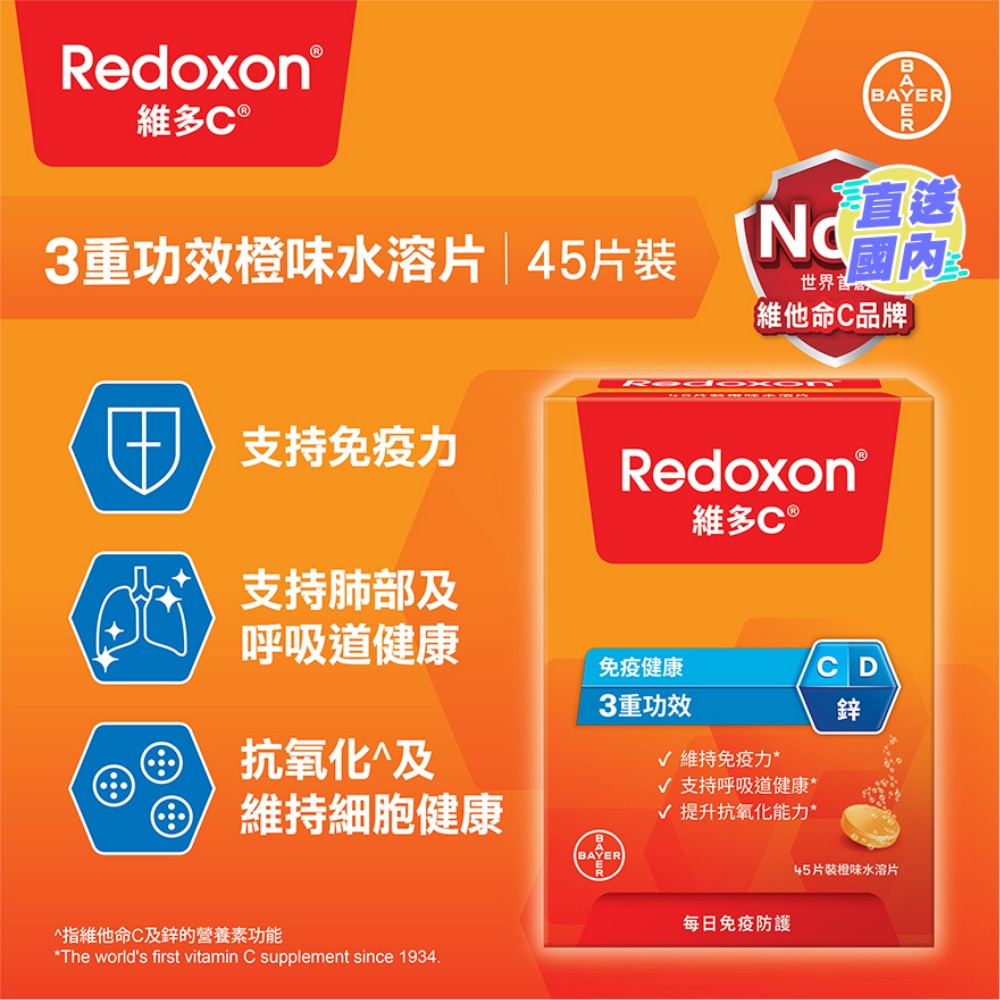 每片含1000毫克維他命C、400國際單位維他命D及10毫克鋅,3大免疫營養素高效支持3重免疫防護包括皮膚表層、免疫細胞及抗體,針對增強免疫力,助你應付免疫力挑戰,如氣溫劇變、壓力 疲勞、及飲食不均衡而引致的不適。當中維他命D有助支持肺部及呼吸道健康; 鋅有助維持細胞免疫功能。