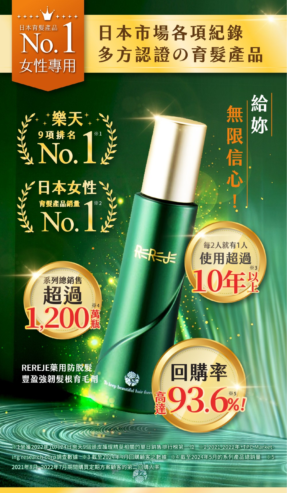日本女性育髮產品銷量NO.1,累積銷售超過1,200萬瓶*!