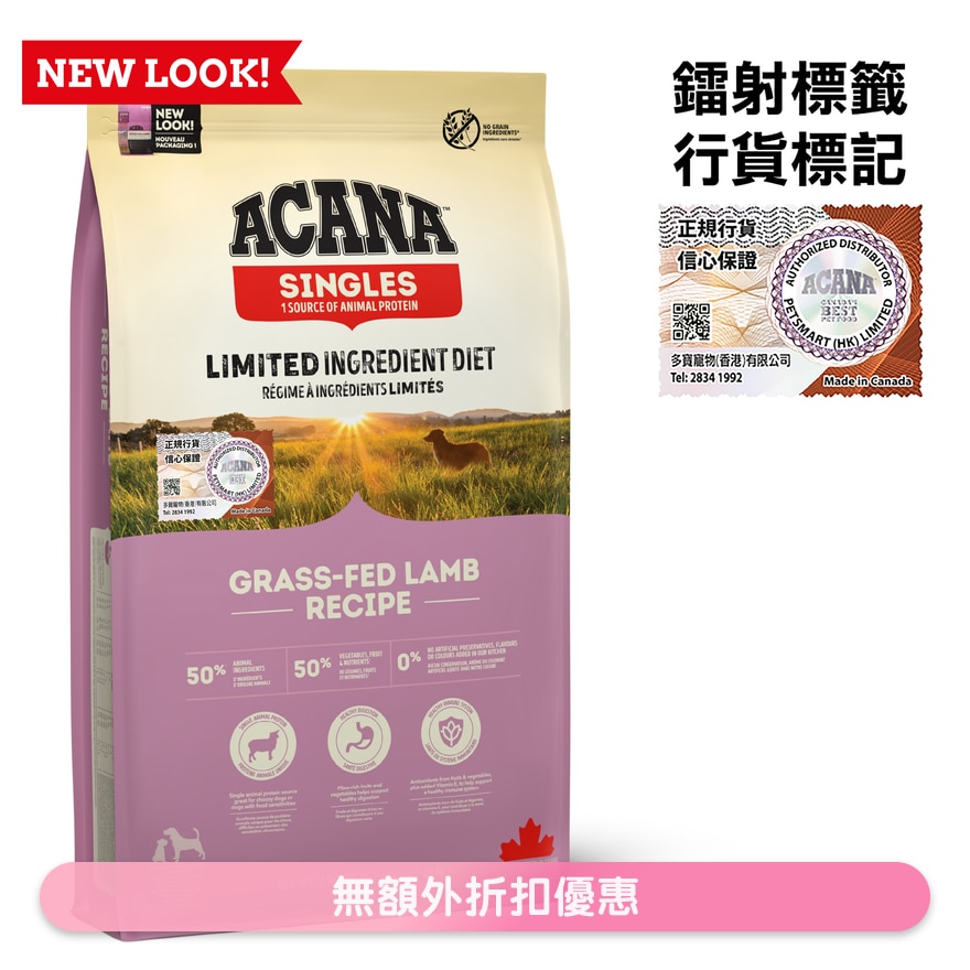 愛肯拿單一動物性蛋白系列內含1/2生鮮羊肉,另外1/2經過乾燥。所有肉類都通過人類食用等級。