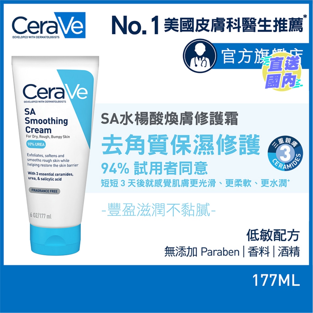 與皮膚科醫生共同研發,配方有助去角質和保濕,舒緩和改善粗糙的皮膚,軟化並幫助恢復皮膚表皮保護屏障。