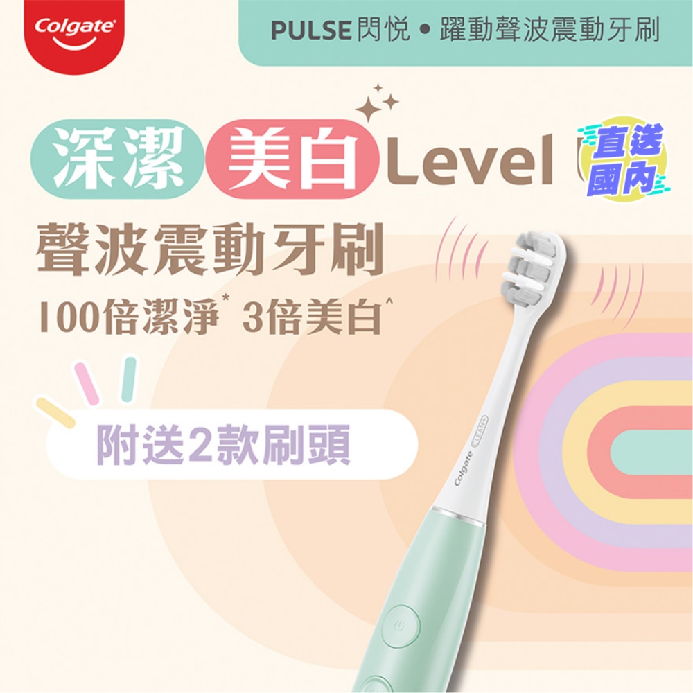 想感受比傳統手動牙刷更潔淨及美白牙齒的體驗?立即升級至全新高露潔Pulse閃悅·躍動聲波震動電動牙刷,感受不一樣的全面潔淨!