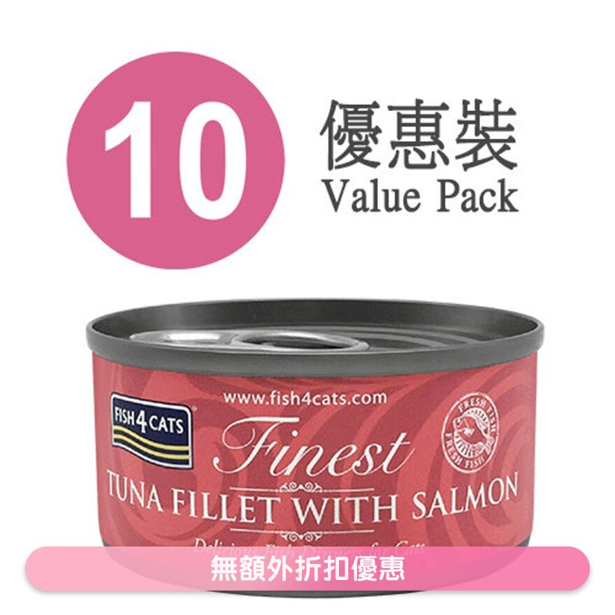 三文魚及吞拿魚柳貓罐頭 (70g x10) - FISH4CATS