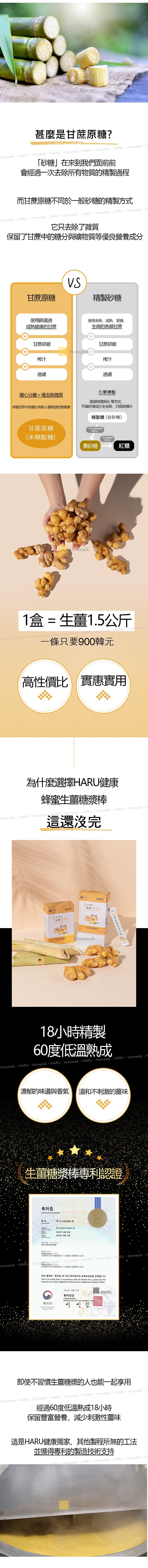 72% 生薑 (韓國)、22% 甘蔗糖 (泰國)、6% 蜂蜜 (韓國)