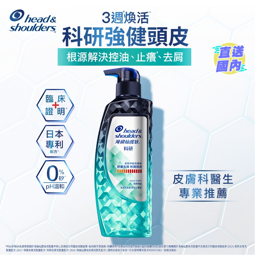 科研去屑洗髮露,專為嚴重頭皮屑設計: