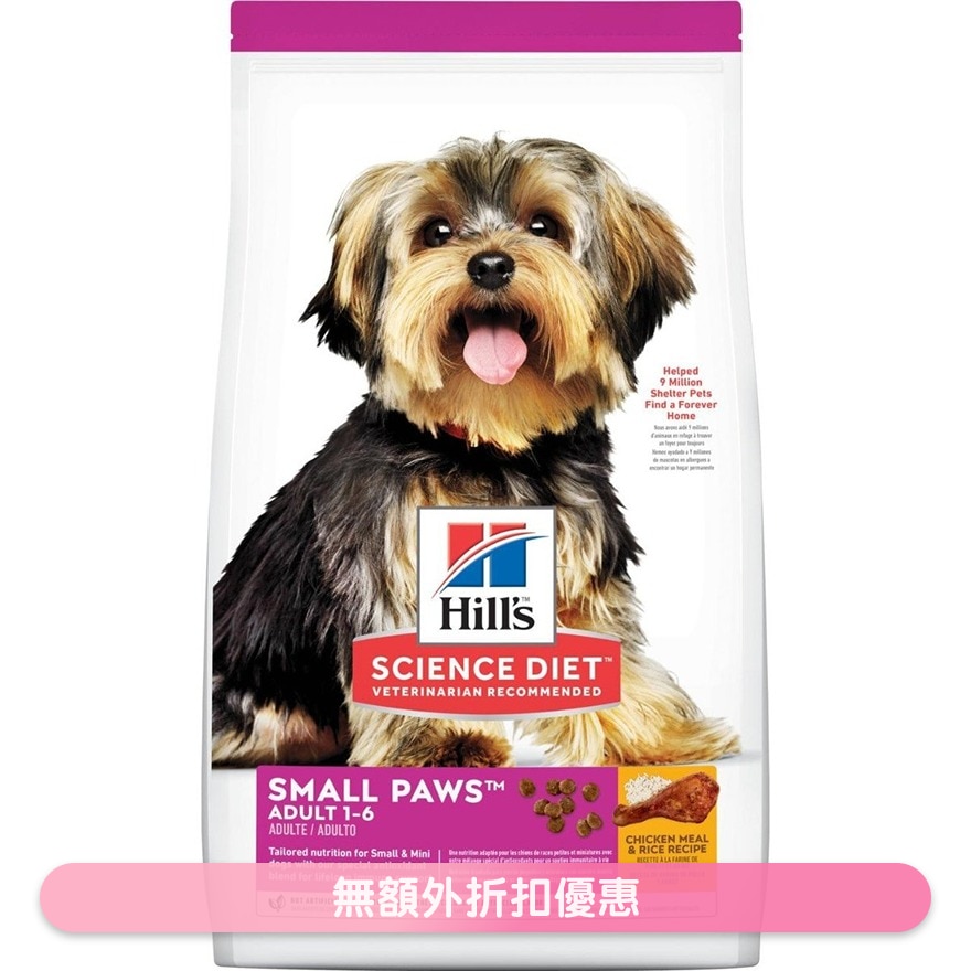 希爾思™寵物食品 小型及迷你成犬是專門研製的營養配方,可滿足小型及迷你犬在旺盛生命階段的特殊需求。特製小顆粒食品,適合小巧體型的寵物食用。