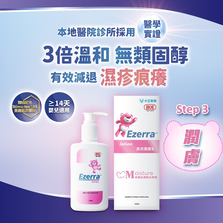 潔淨後,取適量塗抹全身。建議每日配合 Ezerra™ cleanser 清潔