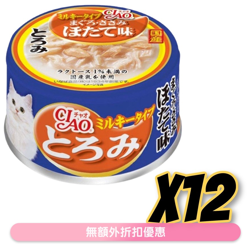 雞胸肉、奶製品、吞拿魚、扇貝提取物、醣類 (低聚寡醣等)、植物油、增稠劑 (加工澱粉)、礦物質、調味料 (氨基酸等)、增稠劑、維生素E、綠茶提取物