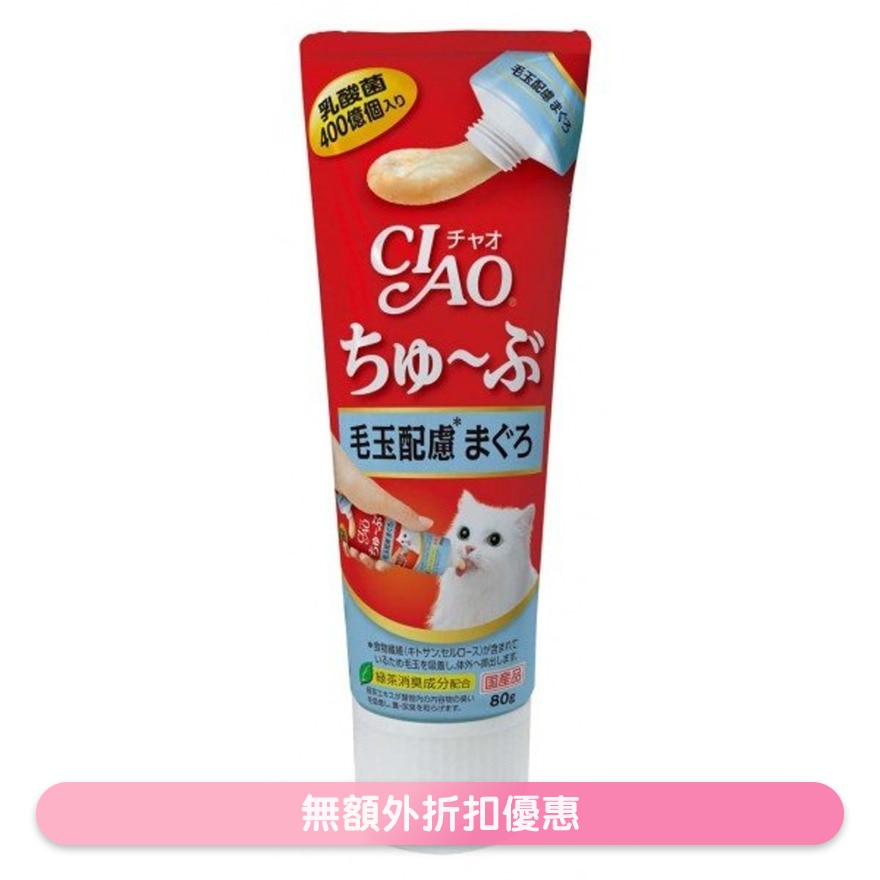 CIAO 乳酸菌吞拿魚化毛球醬 肉泥 (80g)貓小食 *牙膏裝* CS154